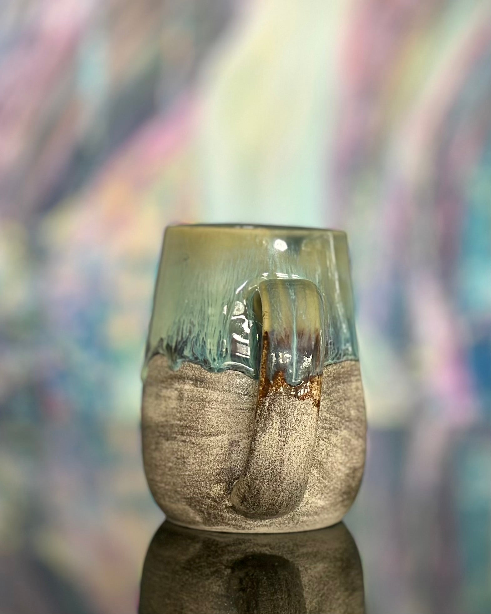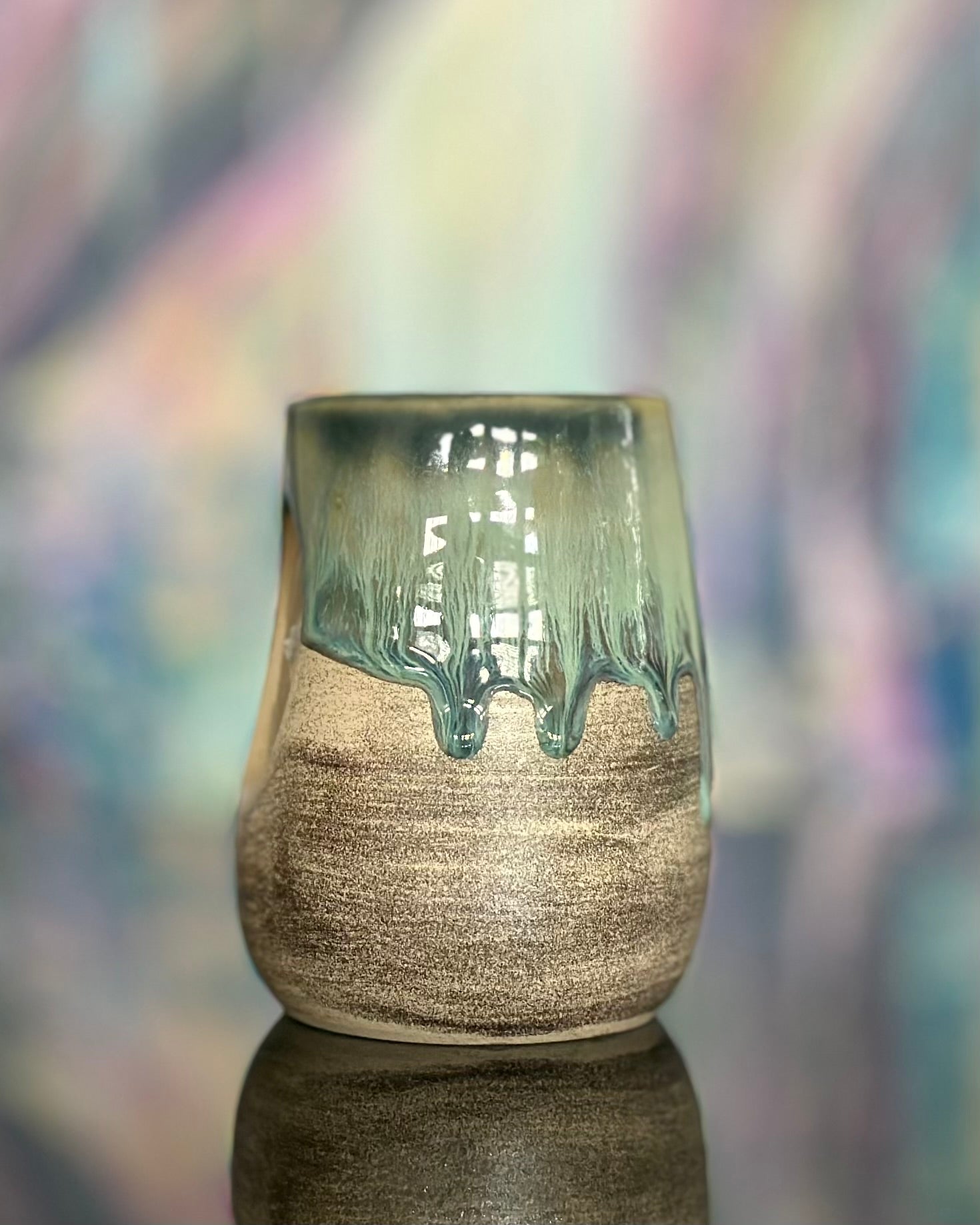 The pottery is photographed in a well-lit area flooded with natural light, typically in front of a window. However, it's important to note that glazes may appear differently under various lighting conditions.